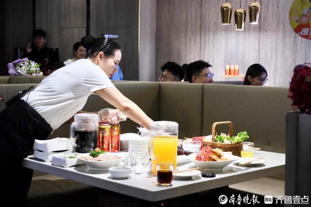 新郎谷金军和新娘别禺欣是这场特殊婚宴的主角。新郎谷金军介绍,他们采取了“分场制”的婚礼模式,兼顾不同群体的需求。“我们为父母和亲人在酒店准备了一场更为传统的仪式,而为朋友们则专门准备了这场海底捞聚会,初衷就是让大家彻底放松,吃得开心、玩得高兴,畅快交流。”